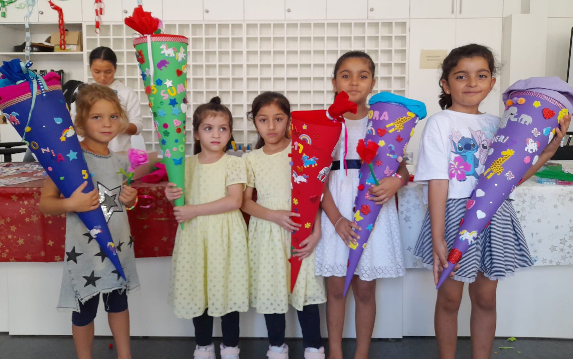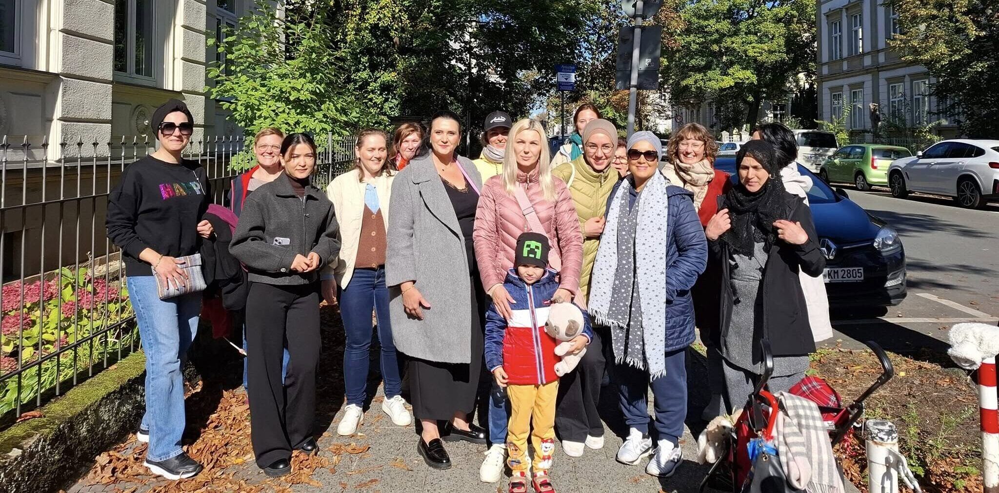 Ein besonderes Highlight ist der Freitanz für Frauen, bei dem Freude und Leichtigkeit durch gemeinsames Tanzen in der Gruppe im Vordergrund stehen. Hier können sich die Teilnehmerinnen frei bewegen und dabei den Alltag hinter sich lassen. Ein weiteres wertvolles Angebot ist das Frauensprachcafé, das jeden Donnerstag stattfindet. Hier kommen Frauen zusammen, um sich auszutauschen und ihre Deutschkenntnisse zu verbessern. Dabei entstehen immer wieder schöne gemeinsame Aktivitäten, wie das Feiern von Fasching oder der monatliche Strickmorgen, bei dem fleißig gestrickt und geplaudert wird. Auch der Deutschkurs für Frauen bietet wöchentlich die Möglichkeit, intensiv die deutsche Sprache zu erlernen und anzuwenden. Hier werden Sprachkenntnisse gefestigt und erweitert – ein wichtiger Schritt zur gesellschaftlichen Teilhabe. Darüber hinaus unterstützt die Frauensprechstunde die Teilnehmerinnen bei alltäglichen Fragen rund um Bürgergeld, Kindergeld, Kinderzuschläge, Jobcenter-Anliegen und Aufenthalt in Deutschland. Hier finden die Frauen eine kompetente Anlaufstelle für ihre Anliegen. Ein besonderes Angebot für die Kleinsten sind unsere Kindersprachkurse. Geflüchtete Vorschulkinder und Erstklässler:innen kommen in Kleingruppen zusammen, um spielerisch die ersten deutschen Worte zu lernen. Dabei werden sie sowohl motorisch als auch sprachlich gezielt auf den Schulstart vorbereitet. Die Donnerstagsgruppe „Starke Mamas“ richtet sich speziell an geflüchtete Mütter. Hier können sie sich austauschen, gegenseitig unterstützen und praktische Hilfe zu Themen wie Kita-Anmeldung oder gesundheitlichen Fragen erhalten. Parallel dazu bieten wir eine Kinderbetreuung, damit die Mütter in Ruhe ins Gespräch kommen können. Zusätzlich findet einmal im Monat das Frauenfrühstück statt, bei dem die Teilnehmerinnen gemeinsam frühstücken und eine Kleinigkeit zum Essen mitbringen. Eine wunderbare Gelegenheit, neue Kontakte zu knüpfen und eine schöne Zeit miteinander zu verbringen.