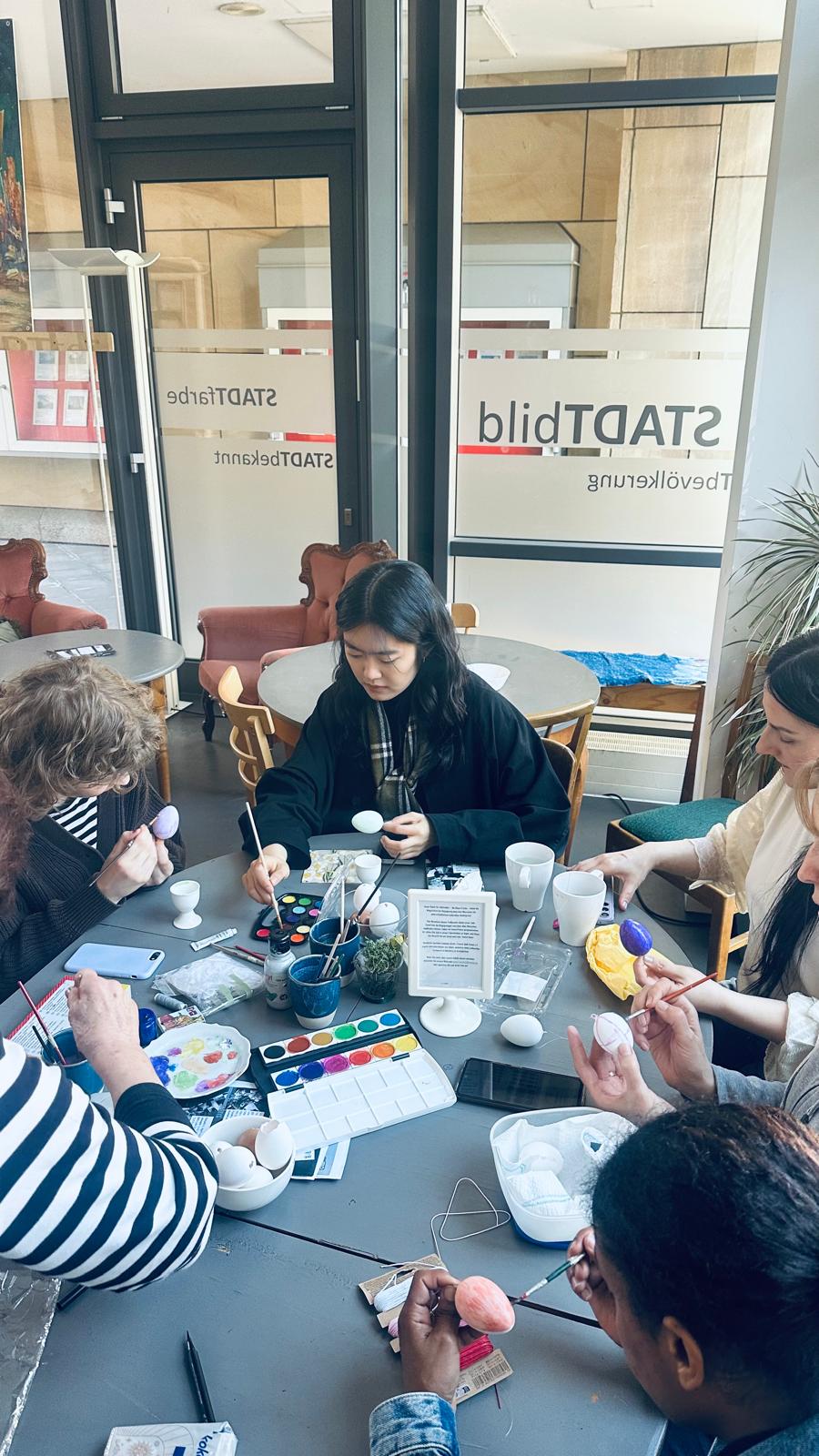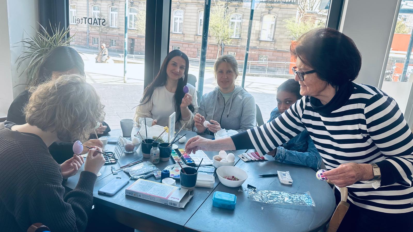 Im Frauensprachcafé wurde bei Kaffee, Tee und selbstgebackenem Kuchen nicht nur geplaudert und Deutsch geübt, sondern auch Ostern gefeiert. Mit großer Begeisterung bemalten die Teilnehmerinnen Ostereier und tauschten sich über Bräuche und Traditionen rund um das Fest aus – für viele eine neue und bereichernde Erfahrung.