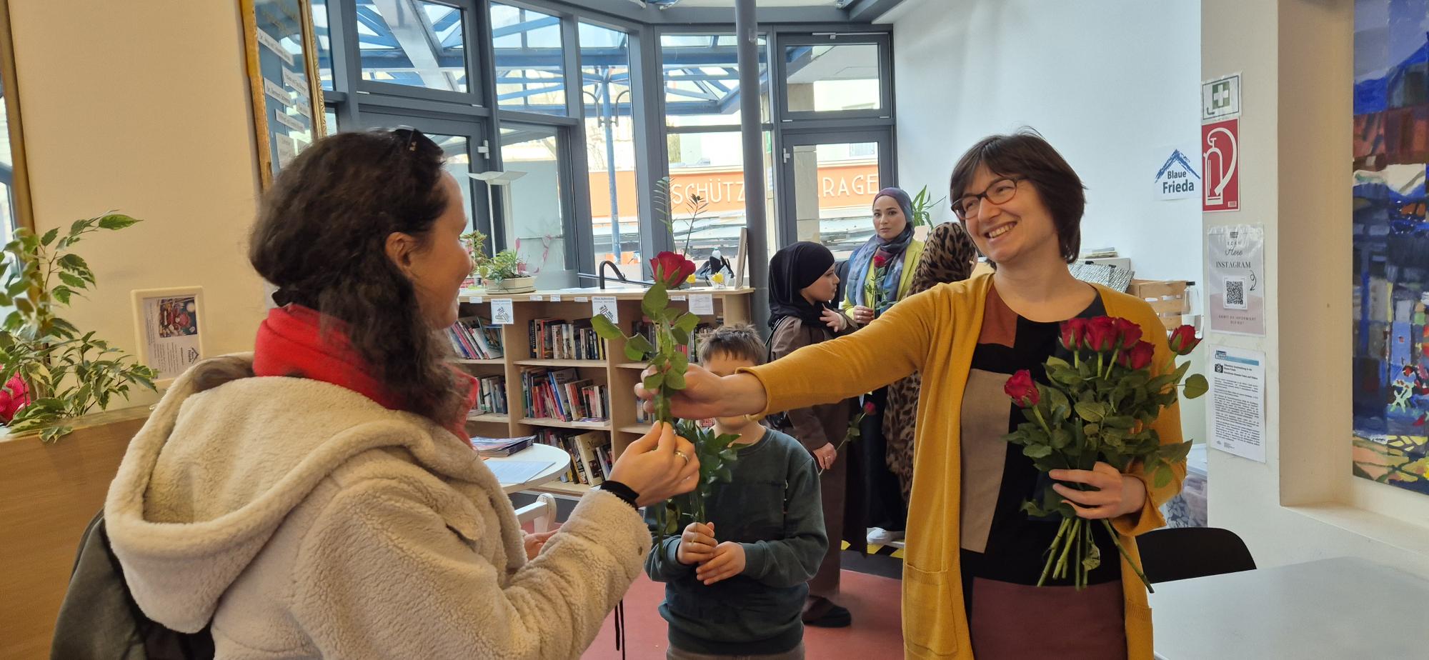 Jede Frau erhielt als kleines Zeichen der Wertschätzung eine Rose – stellvertretend für die Dankbarkeit gegenüber allen Frauen, die diesen Tag mit ihren Geschichten, Beiträgen, ihrer Musik und ihrer Offenheit so besonders gemacht haben.